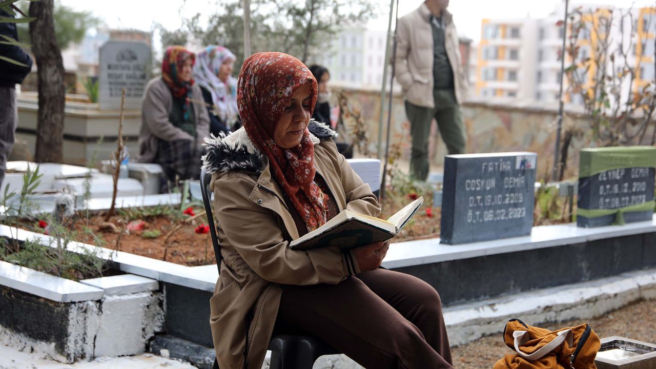 Kahramanmaraş Pazarcık merkezli 7.7 ve Elbistan merkezli 7.6 büyüklüğündeki depremlerden en fazla etkilenen illerden Gaziantep'in Nurdağı ilçesinde, felaketin 3'üncü yıl dönümünde vatandaşlar yakınlarının mezarlarını ziyaret etti. Duygusal anların yaşandığı mezarlıkta Kur'an-ı Kerim okundu, dualar edildi. Sabah erken saatte başlayan mezarlık ziyaretlerine Nurdağı Kaymakamı Nurullah Cemil de katıldı. Cemil ve beraberindekiler, depremde yaşamını yitirenlerin aile yakınlarına başsağlığı diledi. Ziyaretlerin ardından mezarlıkta Mevlid-i Şerif okundu. Aileler ise yakınlarının mezarları başında uzun süre bekledi, gözyaşı döküp, dualar etti. (DHA)
