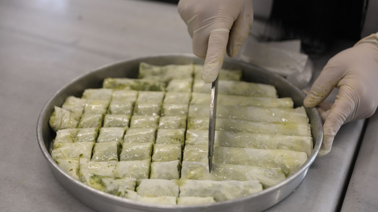 15 kursiyer kadınla birlikte günlük ortalama 50-60 kilogram el açması baklava üretimi yapabildiklerini söyleyen Akbaş, 'Halk Baklava'mızın kilogram fiyatını 750 liradan veriyoruz. Şekline göre fiyatlar değişebiliyor. Fıstık oranına göre baklavanın fiyatı da değişebiliyor. Fıstığı da yine hanımlardan temin ediyoruz. Birinci elden. Günde yaklaşık 20 tepsi baklava üretimi yapıyoruz. Baklavamızı ihracat aşamasında Hollanda'ya ulaştırdık. Çok fazla da talep alıyoruz. Aracı firma bulunması durumunda sürekli satış alanlarının açılması teklifi de geldi. Şehirlerar ası yine ulaştırıyoruz baklavalarımızı. Şu anda öğrencilerimiz burada hem baklava yapımını öğreniyorlar hem her gün ürettikleri baklava kadar para kazanıp, aile bütçesine katkı sunuyorlar' dedi.