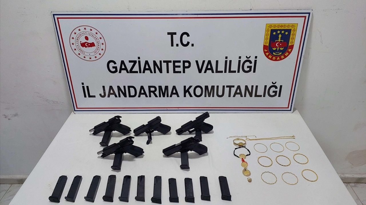 Operasyonda ziynet eşyası, 17 ruhsatsız tabanca, 450 fişek, 42 şarjör ve 95 muhtelif tabanca parçaları ele geçirildi, 2 şüpheli gözaltına alındı.