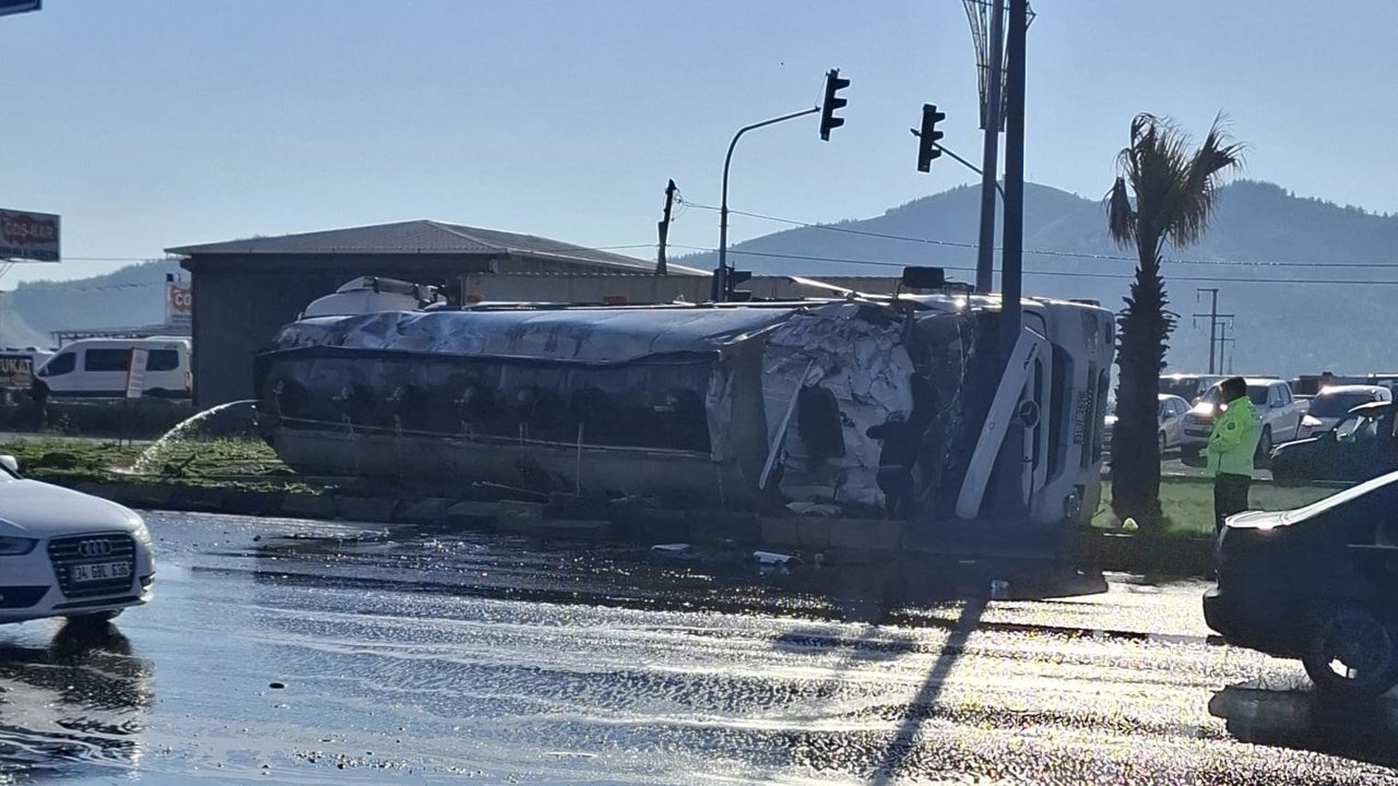 Kaza, sabah saatlerinde Nurdağı-Kahramanmaraş kara yolunun 5'inci kilometresinde meydana geldi. D.B.'nin kontrolünü yitirdiği 31 R 2679 plakalı tanker, devrildi. Sürüklenen tanker, aydınlatma direklerine çarptı. Kaza anı, yolda geçen bir otomobilin araç kamerasına yansıdı. Çevredekilerin ihbarı üzerine kaza yerine sağlık, polis ve itfaiye ekipleri sevk edildi. Yaralı şoför D.B. ve yanındaki D.B. sağlık ekiplerin ilk müdahalesi ardından Nurdağı Devlet Hastanesi'ne kaldırıldı. Yaralıların hayatı tehlikesi olmadığı öğrenilen kazaya ilişkin soruşturma başlatıldı.
