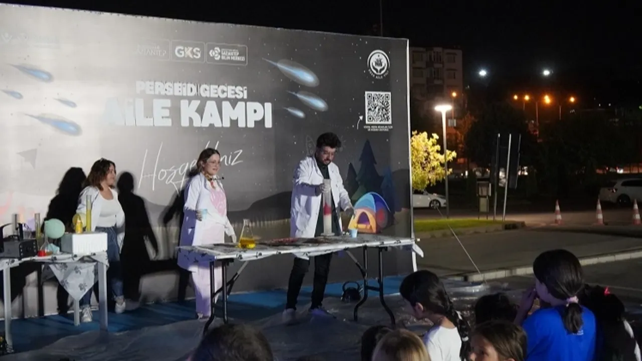 Gaziantep Büyükşehir Belediyesi’ne bağlı Müzeyyen Erkul Gaziantep Bilim Merkezi’nde “Perseid Gecesi Aile Kampı” etkinliğiyle gökyüzü tutkunları ve aileler unutulmaz bir gecede bir araya getirdi.GAZİANTEP (İGFA) - Gaziantep Büyükşehir Belediyesi tarafından akşam saatlerinde başlayan kamp programına 50 ailenin katılımıyla dolu dolu geçti. Gecenin ilerleyen saatlerine kadar süren kampta atölye çalışmaları, aile bilim oyunları, bilgi yarışmaları, gökyüzü sunumları, teleskopla Ay, Jüpiter ve Satürn gözlemleri, belgesel gösterimleri ve çıplak gözle Perseid meteor yağmuru izleme etkinlikleri ile zenginleşen program, katılımcılara hem eğlenceli hem de öğretici anlar yaşattı.