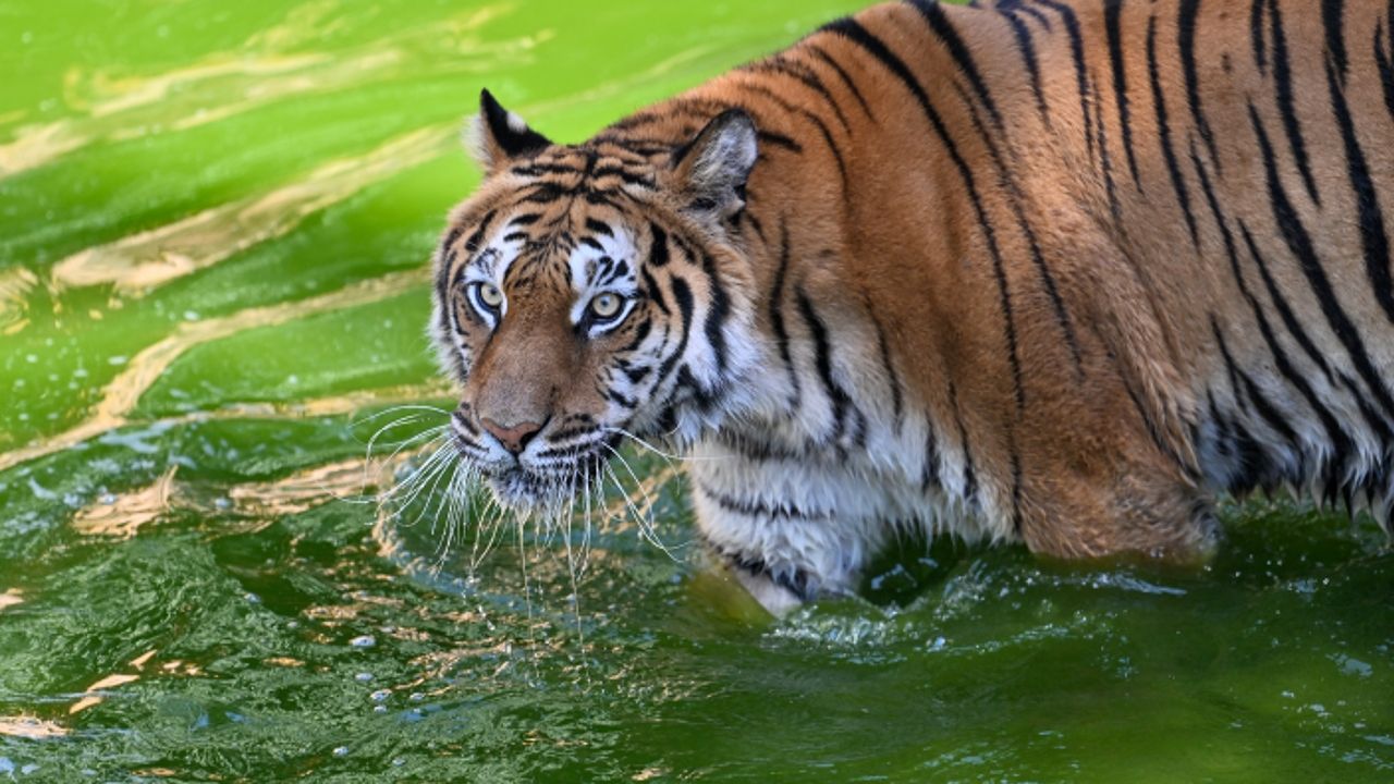 Buzlu kokteyllerle serinleyen kaplanlar, hava sıcaklığının yüksek olması nedeniyle havuzlarında vakit geçirdi.