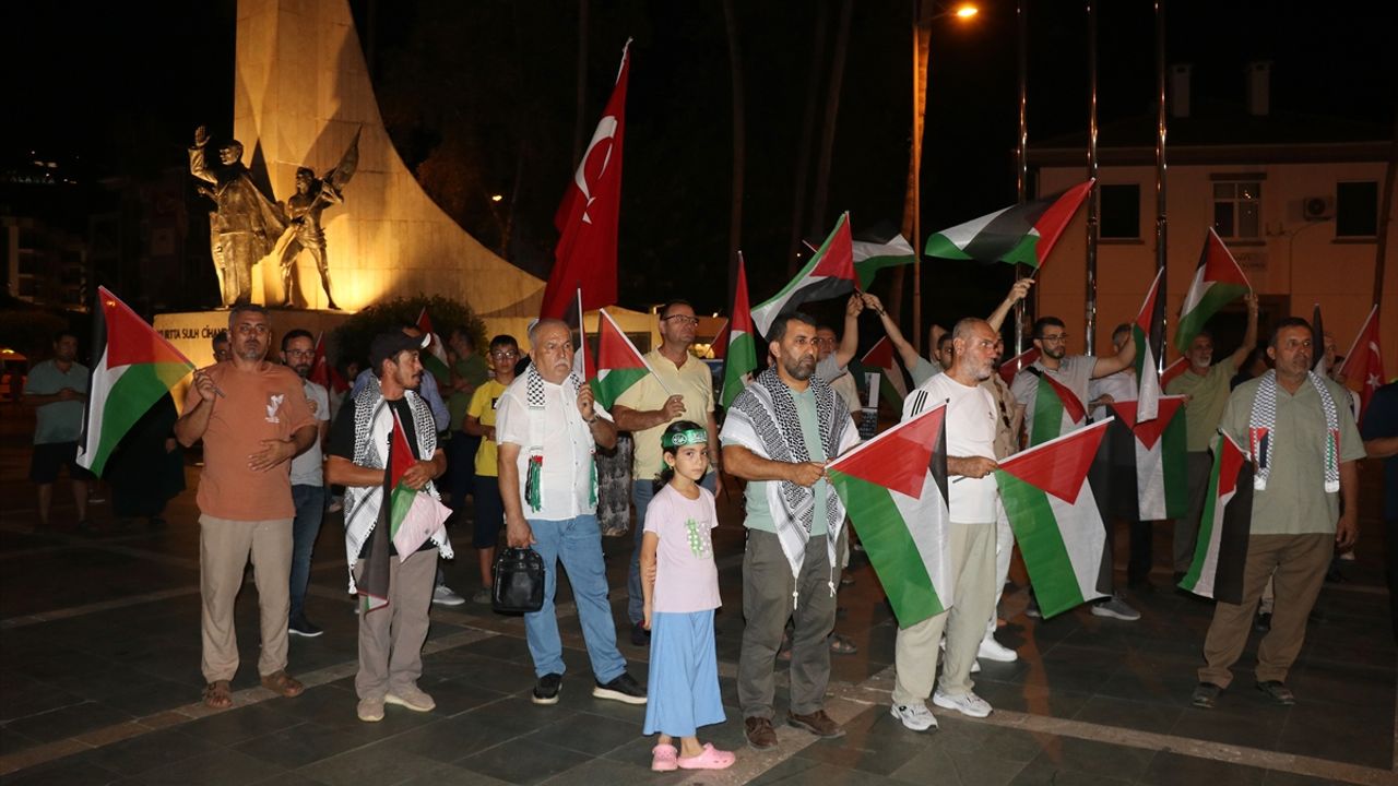 Alanya Dayanışma Platformunca (ALDAP) organize edilen protesto kapsamında vatandaşlar, Gazze'de hayatını kaybeden gazetecileri anmak ve İsrail'e tepki için ellerinde Türk ve Filistin bayraklarıyla Hükümet Meydanı'nda toplandı.