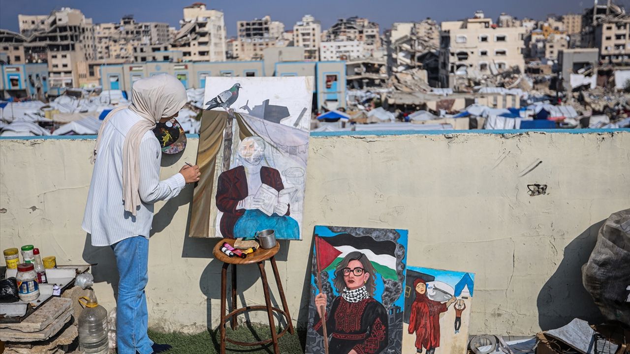 Gazzeli ressamların yaptığı eserler, yaşanan toplumsal acılara ışık tutuyor. Ressamlar, bir parçası oldukları toplumun sesini fırçalarıyla dünyaya duyurmaya çalışıyor.