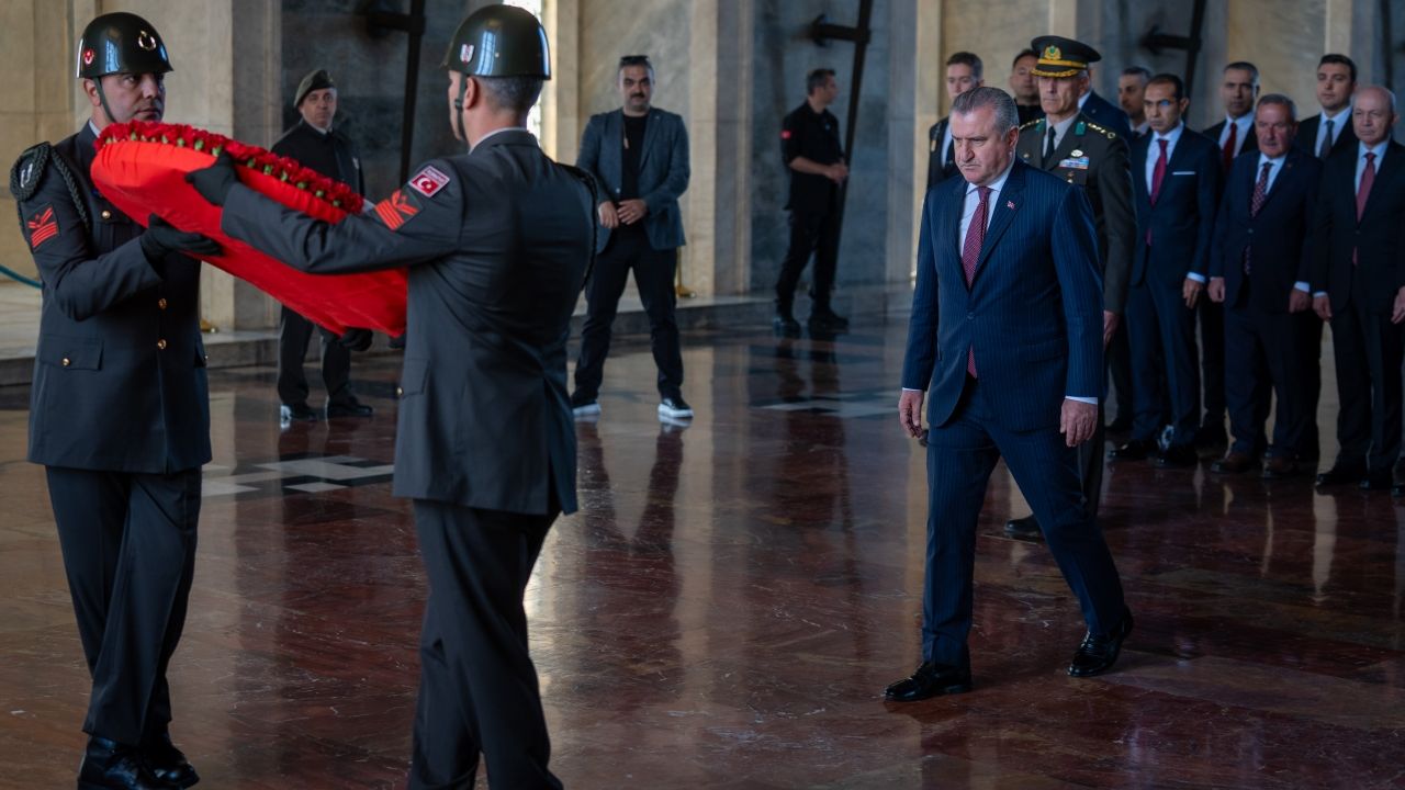 Bakan Bak başkanlığında, bakan yardımcıları, genel müdürler, gençler, sporcular ve diğer ilgililerden oluşan heyet, Aslanlı Yol'dan yürüyerek Gazi Mustafa Kemal Atatürk'ün mozolesine geldi. Bakan Bak'ın üzerinde "Gençlik ve Spor Bakanlığı" yazılı kırmızı-beyaz karanfillerle süslenmiş çelengi mozoleye bırakmasının ardından saygı duruşunda bulunuldu.