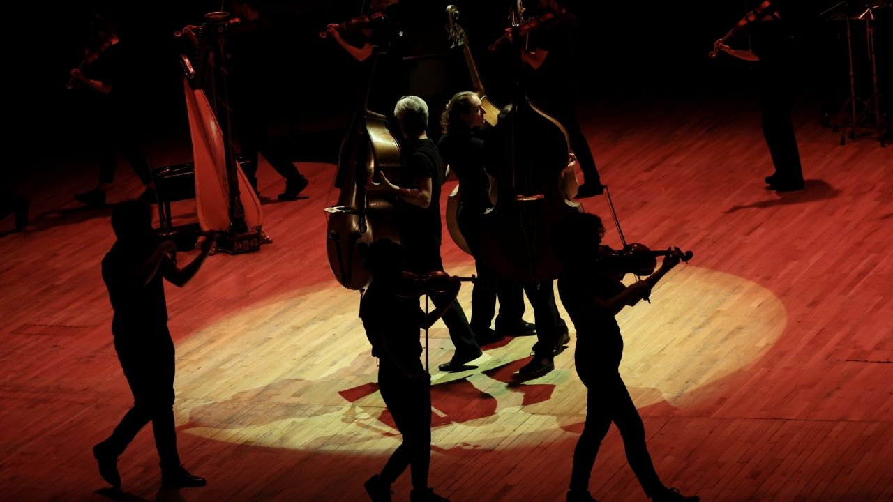 Gösteri, çağdaş besteci Alexandre Mastrangelo'nun "Battle Zone" adlı eseriyle başladı. Ardından dünyaca ünlü orkestra şefi David Greilsammer yönetimindeki GECA üyeleri, Dmitri Shostakovich'in 5. Senfonisi'ni ezberden çaldı, aynı anda sahnede dans etti.