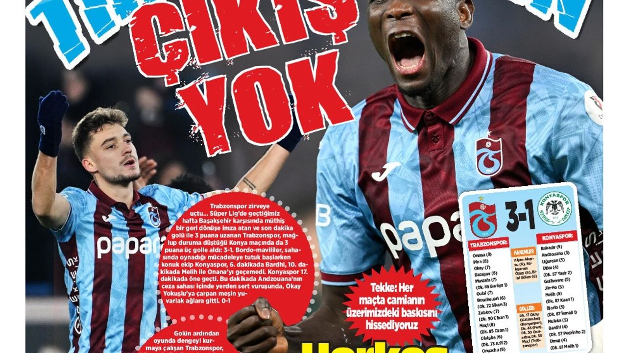 Öte yandan Trabzon'da yayın yapan yerel gazeteler ise Trabzonspor'un Konyaspor karşısında elde ettiği galibiyeti manşetlerine farklı başlıklarla taşıdı. Trabzon yerel basın manşetleri şu şekilde: