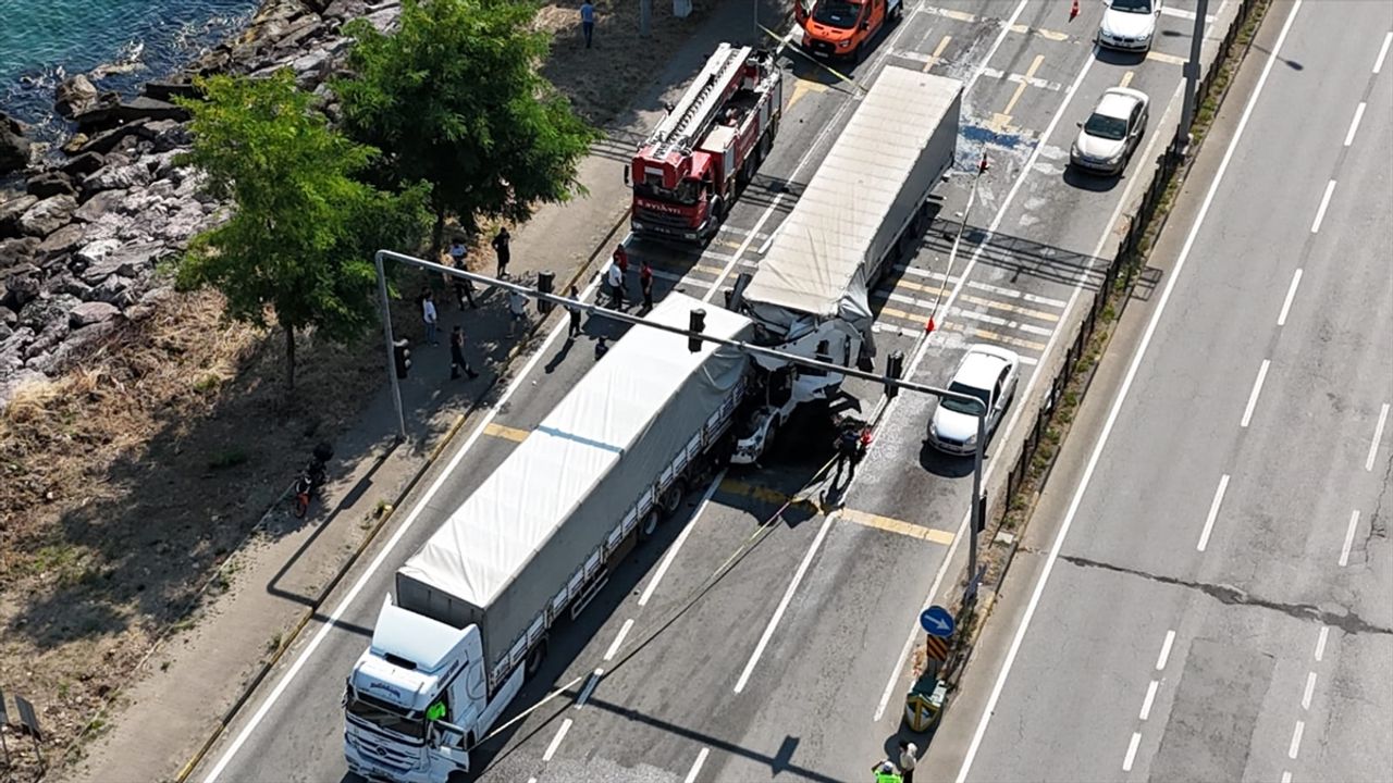 Muhittin Deniz (62) idaresindeki tır, Karadeniz Sahil Yolu'nun ilçe girişinde trafik ışıklarında bekleyen S.S'nin kullandığı tır ile C.Ç. yönetimindeki otomobile arkadan çarptı.