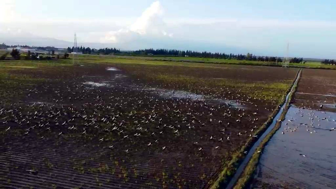 Afrika-Avrasya göç rotası üzerinde yer alan Hatay, göç mevsiminin başlamasıyla birlikte göçmen kuşların uğrak noktası haline geldi. Göç eden binlerce leylek, Reyhanlı ilçesinde Amik Ovası'ndaki sulak alanlarda mola verdi. Burada hem dinlenen hem de beslenen leylekler, molanın ardından yollarına devam etti. Göç yolundaki leylekler dronla görüntülendi.