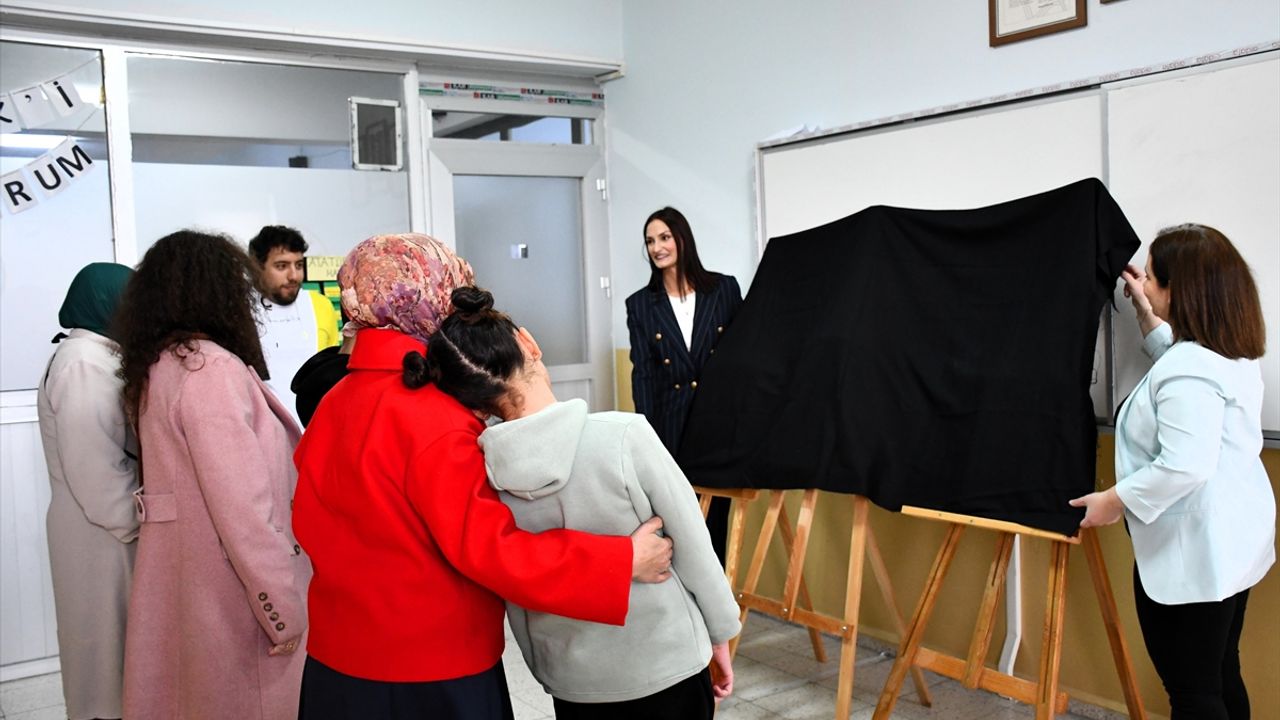 Okul yönetimi de öğrencileri ve ailelerini davet ederek sergi açtı. Sergide resimlerini ilk kez gören öğrenciler, heyecan ve mutluluklarını öğretmenleriyle paylaştı.