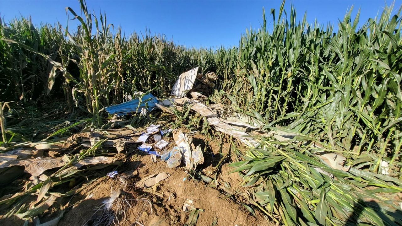 Tarlaya düşen uçak, vinç yardımıyla olay yerinden kaldırılarak kamyonla bölgeden götürüldü.