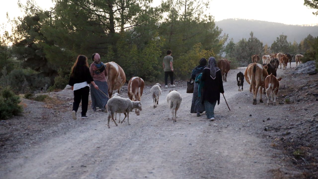 Vatandaşlar hayvanlarıyla köylerine dönüyor.