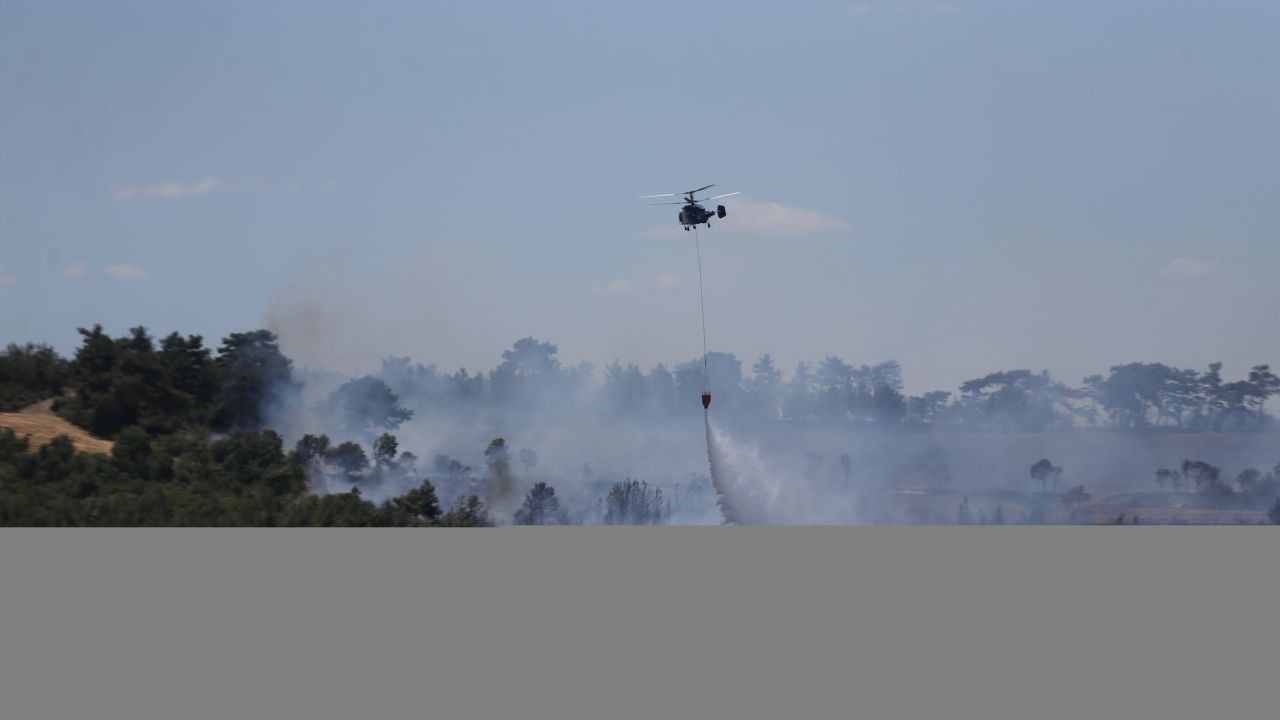 Rüzgarın etkisiyle ormanlık alana yayılan yangına müdahale için Orman Bölge Müdürlüğüne bağlı helikopterler ve uçaklar ile havadan, yer ekipleriyle de karadan müdahale başladı.