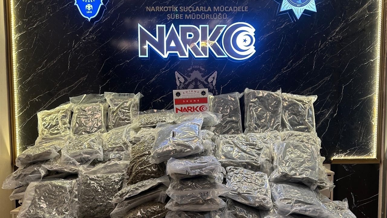 EDİRNE (AA) - Hamzabeyli Sınır Kapısı'nda bir tırda 115 kilogram skunk ele geçirildi, 2 şüpheli tutuklandı.