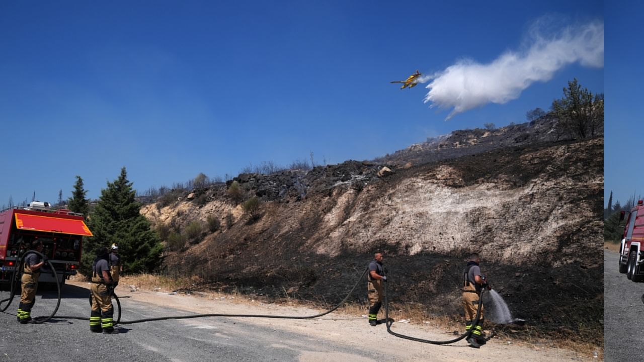 İhbar üzerine bölge İzmir Orman Bölge Müdürlüğüne ait 6 uçak, 5 helikopter, 13 arazöz, 6 su ikmal ve 3 dozer sevk edildi.
