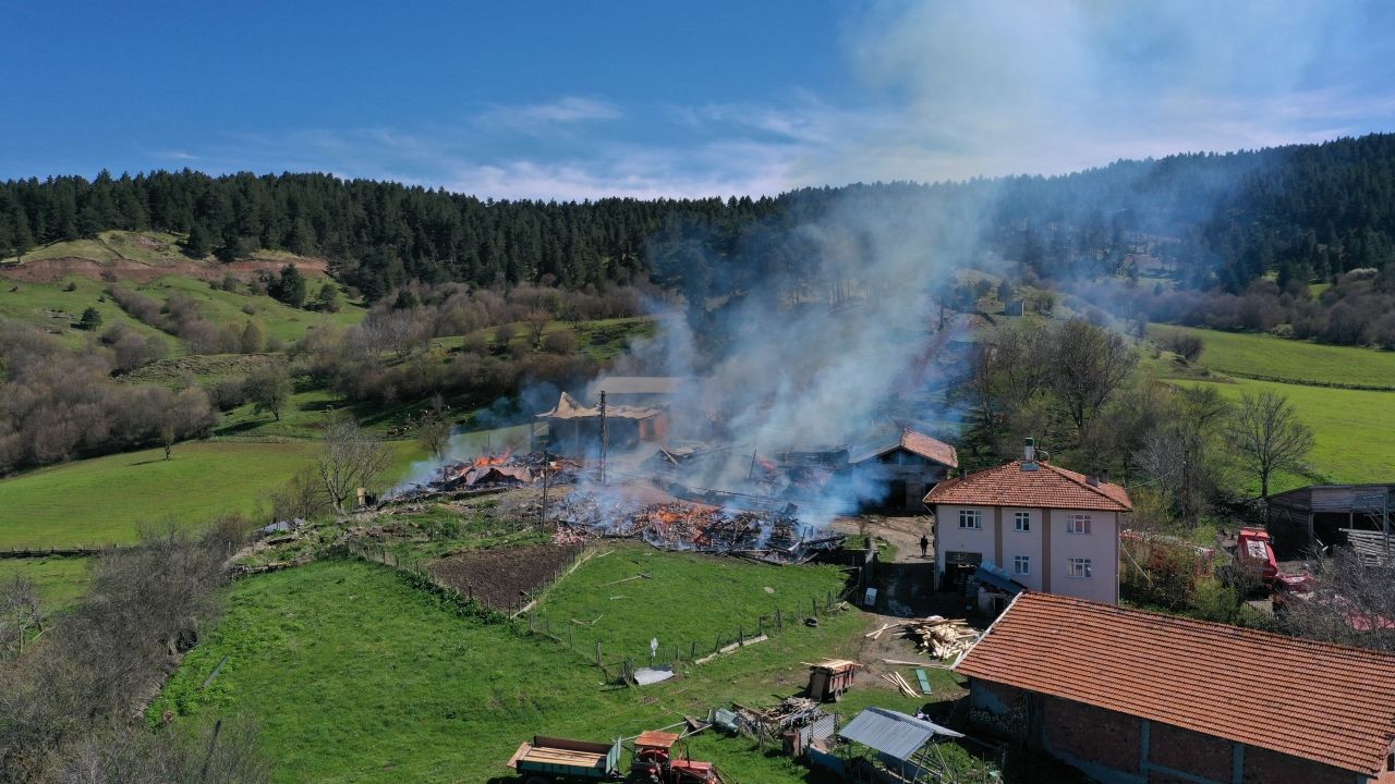 İtfaiye ekipleri, 3 ev ile 3 ahırın zarar gördüğü yangını, yaklaşık 6 saat süren çalışmanın ardından kontrol altına aldı, soğutma çalışması sürüyor.