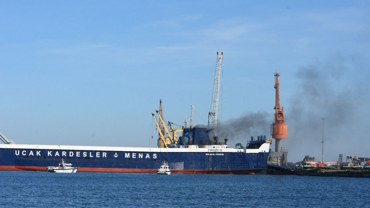 Samsun Port Limanı'nda boş olan "Firuze G" isimli kuru yük gemisinin makine dairesinde yangın çıktı.