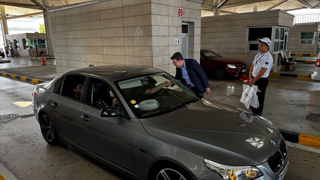 Turus, gümrük çalışanları ve emniyet mensuplarına teşekkür ederek, YTB ikram standındaki görevlilerle de hatıra fotoğrafı çektirdi.