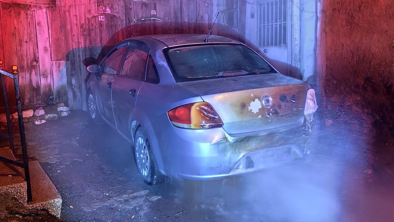 Şüphelinin, alacak meselesi nedeniyle aracı kundakladığı öğrenilirken, soruşturma sürüyor. (DHA)