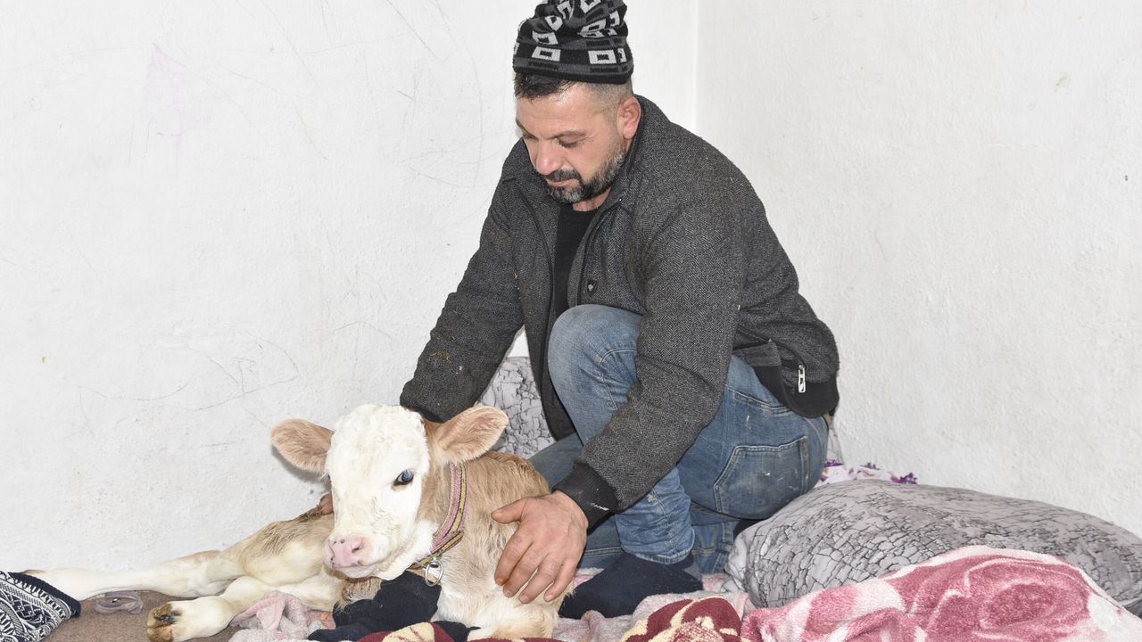 Çetin Aygül, soğuk hava nedeniyle hayvanı eve aldıklarını belirterek, 'Buzağımız henüz çok küçük ve hasta. Havalar oldukça soğuk olduğu için üşümemesi için onu eve aldık. Sobanın yanında ona özel bir yer hazırladık. Adeta bir bebek gibi bakımını yapıyoruz' diye konuştu.