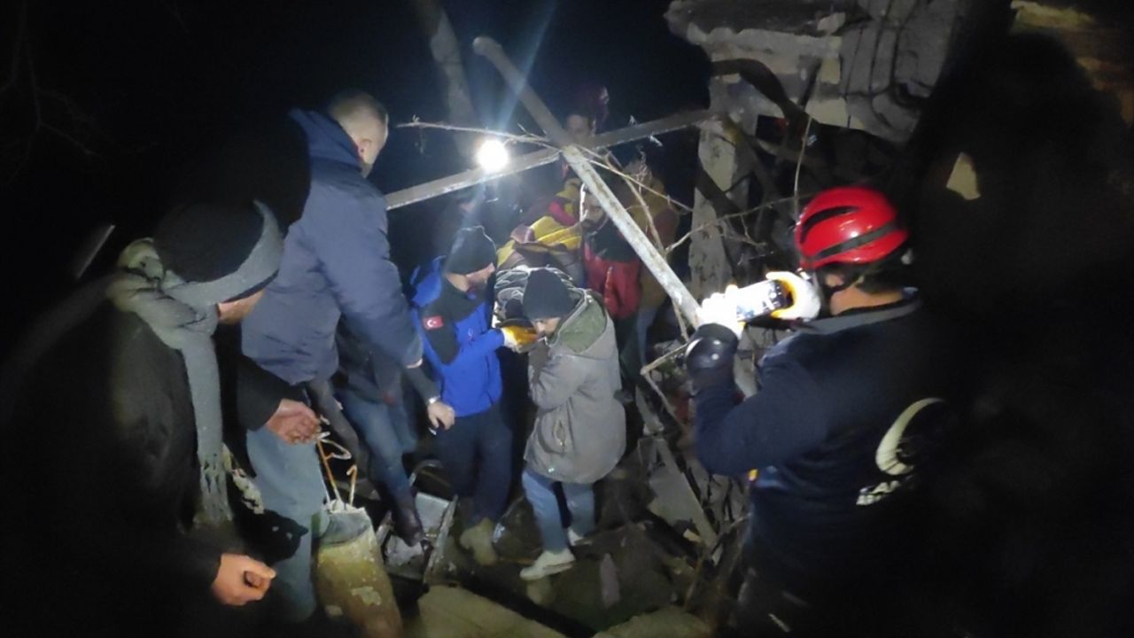 Enkazdan yaralı olarak kurtarılan kadın, hastaneye sevk edildi.