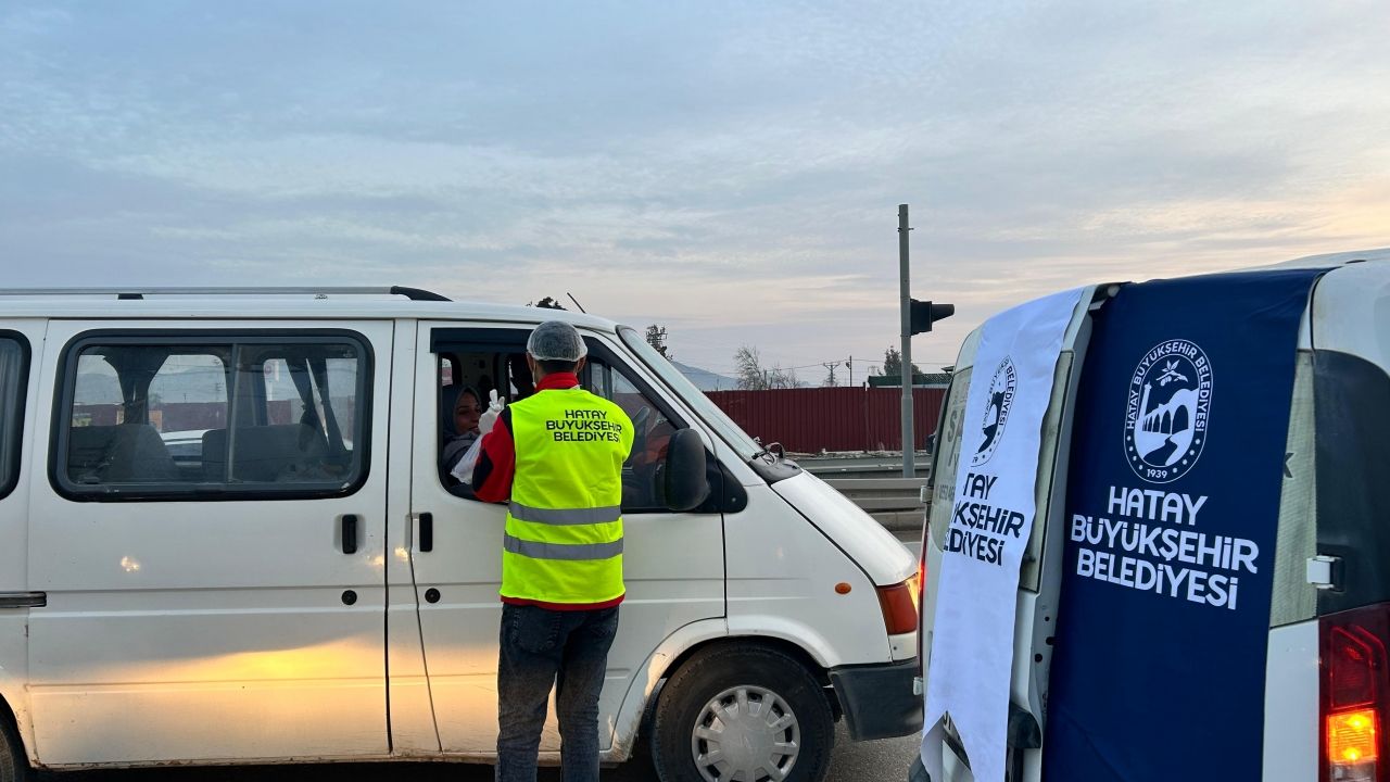 HATAY (AA) - Hatay Büyükşehir Belediyesi ekipleri, "İftara 5 kala" çalışması kapsamında iftar saatine trafikte yakalananların oruçlarını açması amacıyla kumanya dağıtımı gerçekleştirdi.