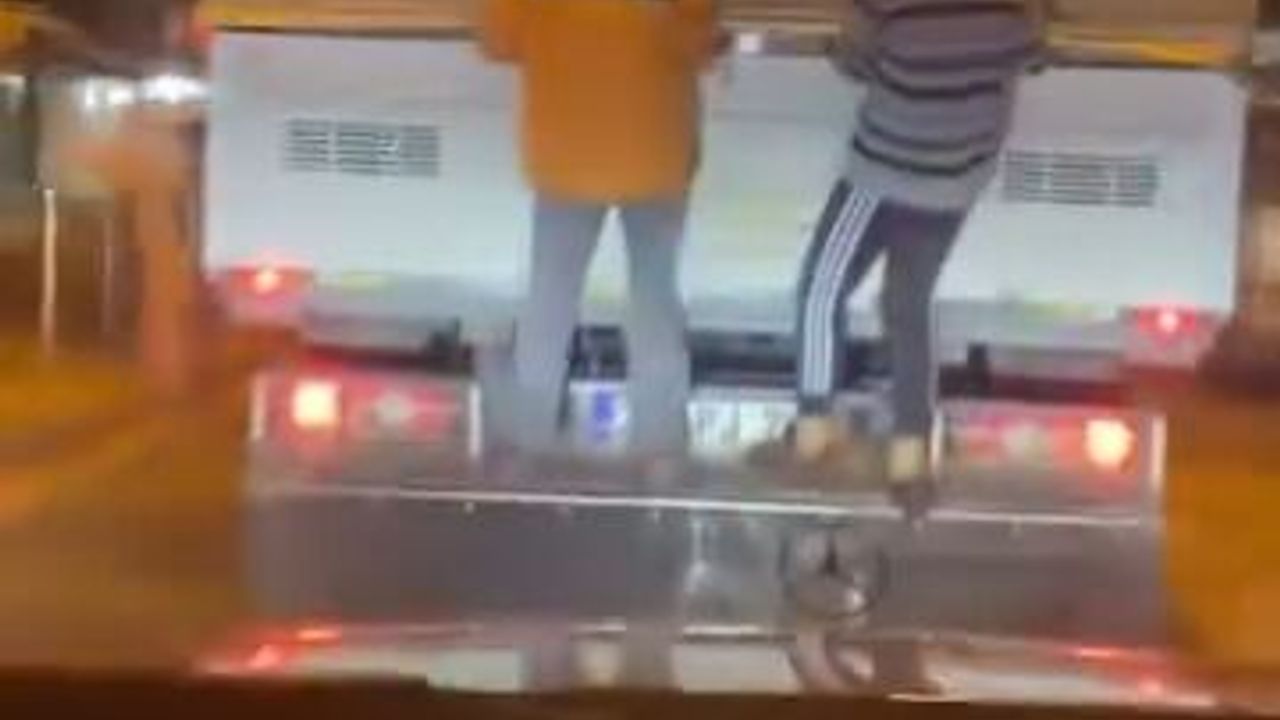 Olay, akşam saatlerinde Reyhanlı'daki Atatürk Caddesi'nde meydana geldi Seyir halindeki kamyonetin arkasına asılan 2 çocuk, sürücüden habersiz tehlike yaklaşık 3 kilometre tehlikeli şekilde yolculuk etti. Hem kendi hem de cadde üzerindeki trafiği tehlikeye düşüren çocukların bu yolculuğu diğer araçlarda bulunan vatandaşlar tarafından cep telefonu kamerasıyla kayda alındı. Diğer sürücülerin kornaya basarak uyardığı kamyon sürücüsünün aracını durdurması ile çocukların tehlikeli yolcuları herhangi bir yaralanma meydana gelmeden sona erdi.