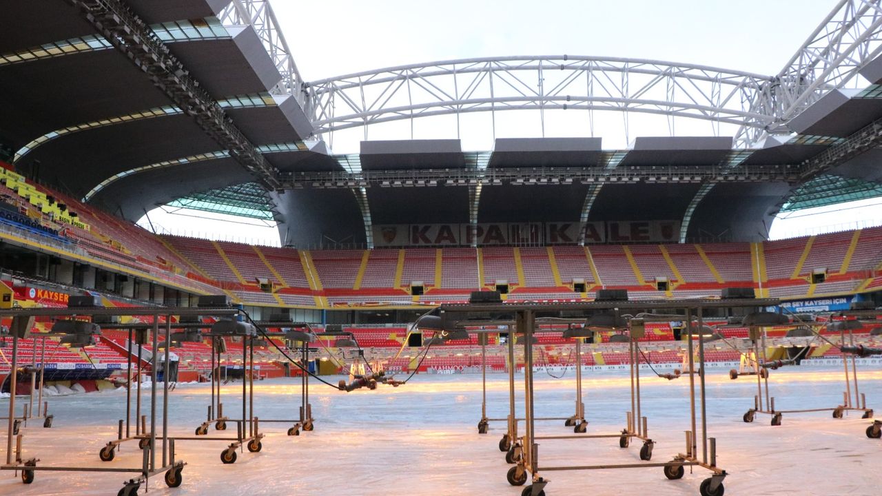 Kentte etkili olan kar yağışının ardından hava sıcaklıkları eksi 17 derecelere kadar düştü. Süper Lig'de mücadele eden Zecorner Kayserispor'un maçlarına ev sahipliği yapan RHG Enertürk Enerji Stadyumu'nda da zeminin korunması için çalışmalar yapıldı. Lige verilen arada, Büyükşehir Belediyesi bünyesindeki Spor A.Ş. tarafından bakım ve onarımları yapılan stadyumda, zeminin dondan etkilenmemesi için çim üstüne özel naylon örtü serildi. Eksi 17 derecede stadyum zemini naylon örtüyle hava aldırılmazken, 2-3 gün arasında ise örtü kaldırılıp çimler havalandırıldı. Yapay güneşleme sisteminin de devrede olduğu stadyumda, çimlerin soğuk havadan zarar görmemesi için çalışmalar sürüyor.