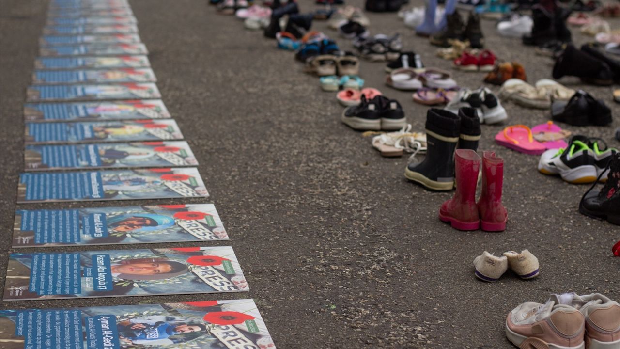 Binlerce çocuk ayakkabısı da meydana bırakıldı.