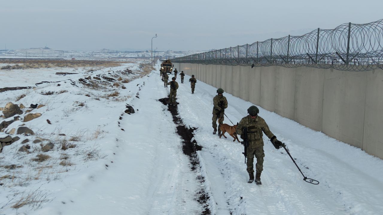 DHA ekibi de Iğdır'da, Ağrı Dağı eteklerinde görev yapan Hudut Kartalları'nın sınır hattındaki çalışmalarını yerinde görüntüledi. Türkiye'nin 3 ülkeye sınırı bulunan tek ili olan Iğdır'ın Aralık ilçesinde Ağrı Dağı eteklerinde yer alan 7'nci Hudut Bölüğü Subaşı Bölük Merkezi sorumluluk sahasında görev yapan 'Hudut Kartalları', yasa dışı geçişler, kaçakçılık faaliyetleri ve terör tehditlerine karşı sınır hattını anbean gözetliyor. 7'nci Hudut Bölüğü Subaşı Bölük Merkezi sorumluluk sahasında aydınlatma sistemleri, termal kameralar, fotokapanlar, sismik sensörler, dron ve dronsavar sistemleri ile elektro-optik kuleler bulunuyor. Keşif ve gözetleme faaliyetleriyle önlem alan Hudut Kartalları, yerli ve milli son teknoloji cihazlarla donatılan sınır hattında dedektörler, mayın arama köpekleri ve Mayın ve El Yapımı Patlayıcı Tespit ve İmha Timi (METİ) ile arazi arama-tarama faaliyetleri yürütüyor.