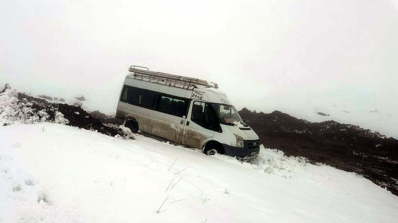 Bu arada Iğdır'a bağlı Alibeyköy'den aldığı yolcularla kent merkezine hareket eden Ali Turgut idaresindeki minibüs, kar yağışı ve yoğun sis nedeniyle yoldan çıkarak şarampole düştü. İhbar üzerine kaza yerine gelen İl Özel İdaresi'ne ait iş makineleri minibüsü bulunduğu yerden çıkardı.
