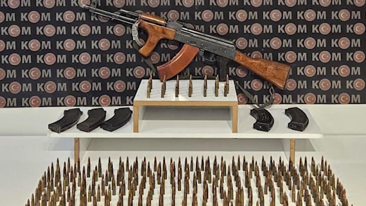 Iğdır Emniyet Müdürlüğü Kaçakçılık ve Organize Suçlarla Mücadele Şube Müdürlüğü ekipleri tarafından yapılan çalışmalarda, E.V.'de AK-47 uzun namlulu silah bulunduğu bilgisine ulaşıldı. Ekipler, şüphelinin kullandığı aracı dronla takip edip, Melekli beldesi Atatürk Caddesi'nde durdurdu. Arama yapılan araçta 1 adet AK-47 Kalaşnikof uzun namlulu silah, 6 adet AK-47 Kalaşnikof şarjörü ve 299 adet 7x62 mm çapında mermi ile evinde ise 64 adet 7x62 mm çapında mermi ele geçirildi. Emniyetteki işlemleri tamamlanan şüpheli, çıkarıldığı adliyede tutuklandı. (DHA)