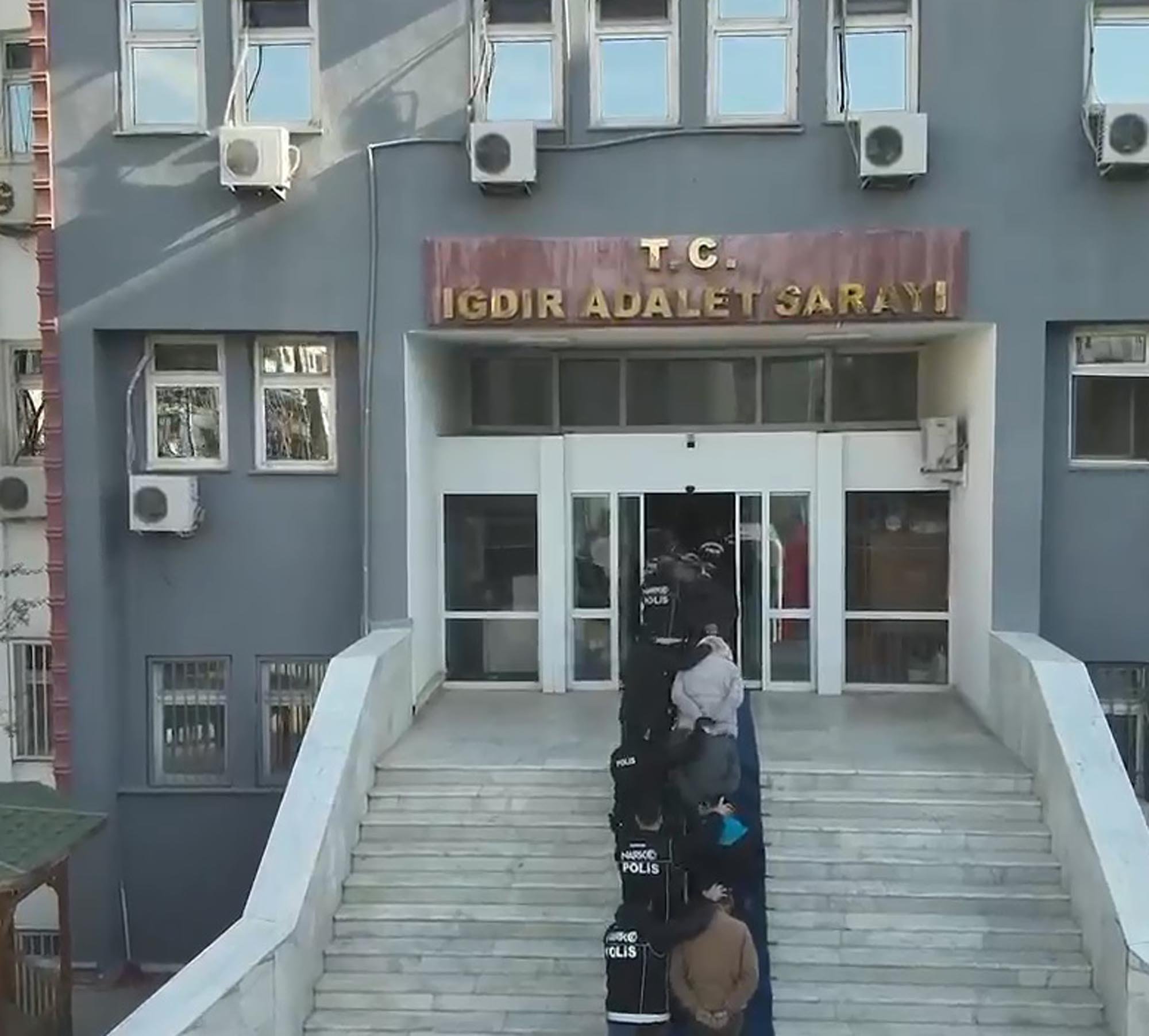 Iğdır Cumhuriyet Başsavcılığı koordinesinde, Iğdır İl Emniyet Müdürlüğü Narkotik Suçlarla Mücadele Şube Müdürlüğü ekipleri, sokakta uyuşturucu satan şüphelilere yönelik çalışma yaptı. 3 ay süren teknik ve fiziki takibin ardından 1 Nisan sabahı 12 farklı adrese operasyon düzenlendi. Adreslerde yapılan aramalarda; 5 bin 221 içimlik kağıda emdirilmiş bonzai, 13,69 gram metamfetamin ile çok sayıda uyuşturucu kullanımı ile ilgili aparat ele geçirildi. Operasyon kapsamında 11 şüpheli, 'Uyuşturucu veya uyarıcı madde imal ve ticareti' suçlamasıyla gözaltına alındı. Emniyetteki işlemleri tamamlandıktan sonra adliyeye çıkarılan şüphelilerden 9'u tutuklanırken, 2'si adli kontrolle serbest kaldı. (DHA)