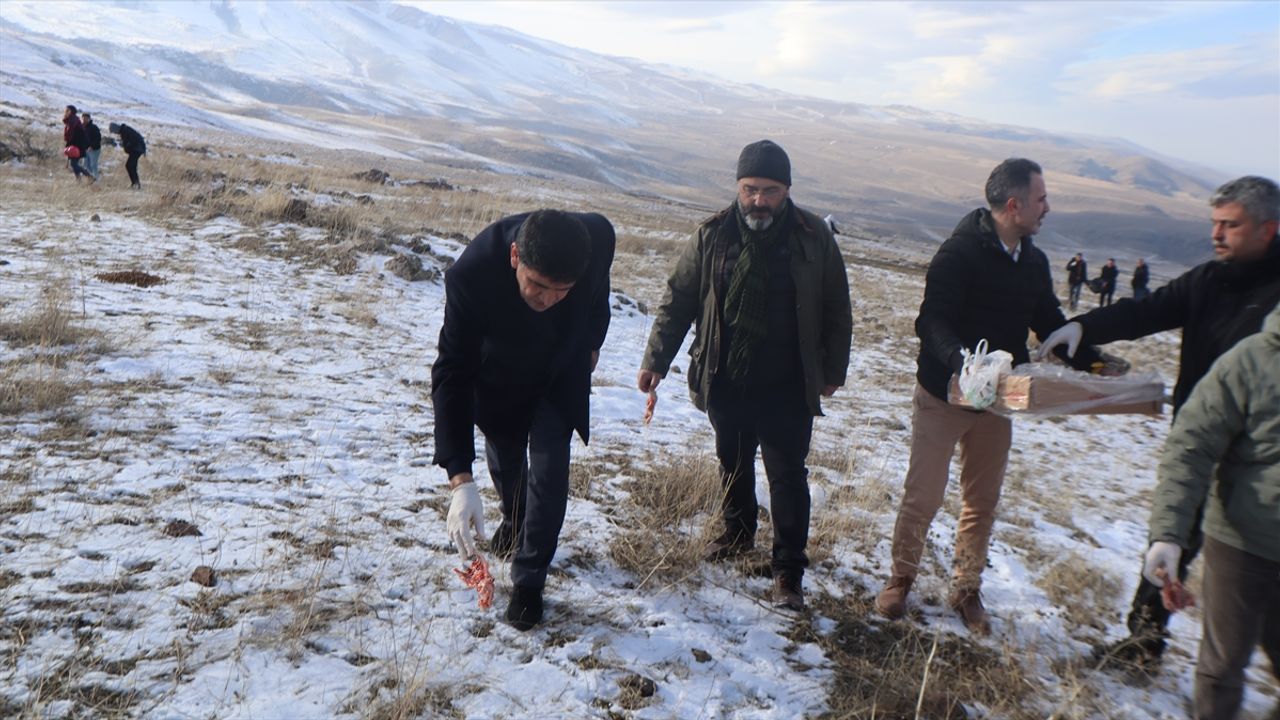 IĞDIR (AA) - Iğdır Üniversitesi Avcılık ve Yaban Hayatı Bölümü öğrencileri, akademisyenlerle yaban hayvanları için Ağrı Dağı'na et ile yem bıraktı.