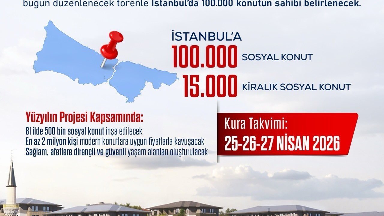 İletişim Başkanı Burhanettin Duran, sanal medya hesabından yaptığı açıklamada, 'Türkiye tarihinin en büyük sosyal konut hamlesi devam ediyor. Cumhurbaşkanımız Sayın Recep Tayyip Erdoğan'ın teşrifleriyle, bugün düzenlenecek törenle, İstanbul'da 100 bin konutun hak sahipleri belirlenecek. Kura süreci 3 gün boyunca devam edecek' ifadelerini kullandı.