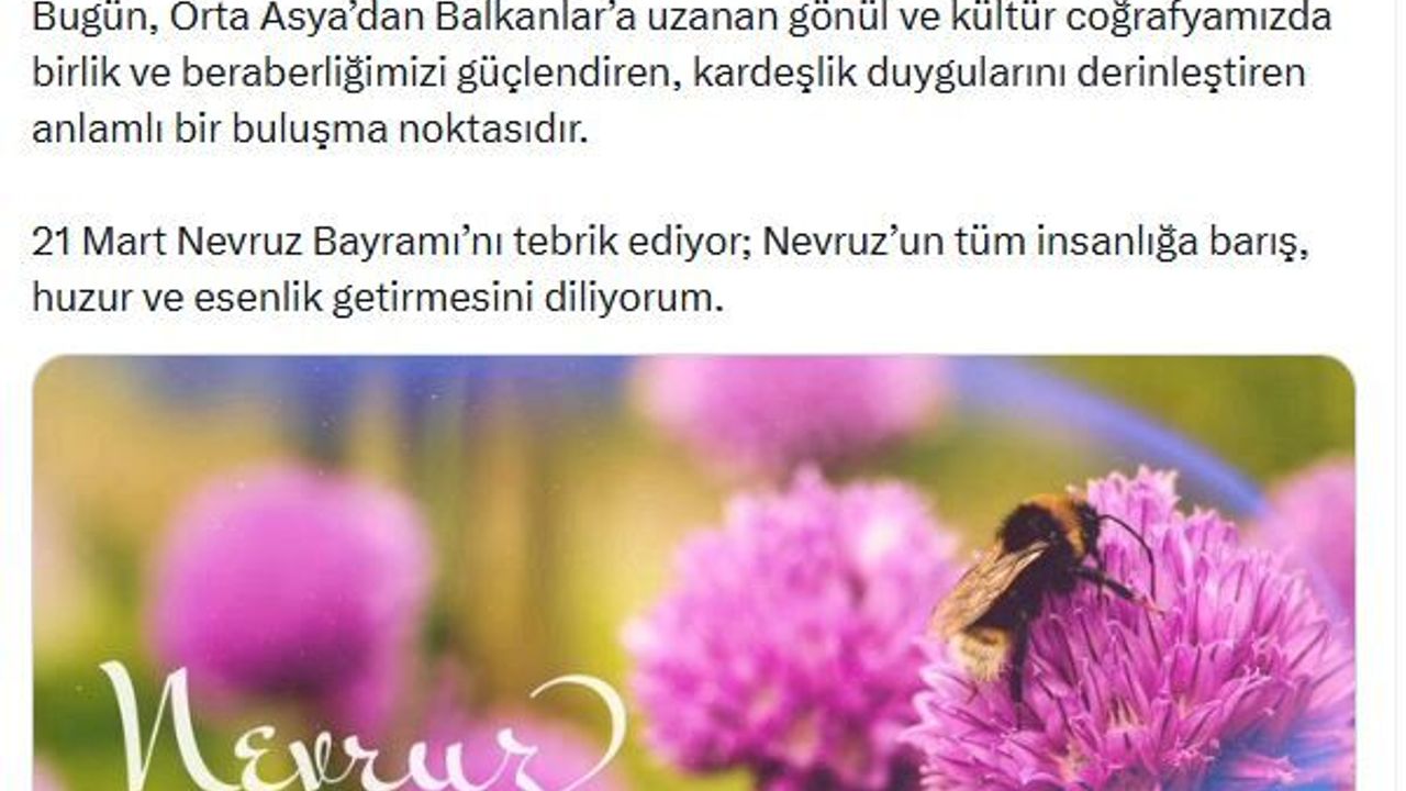 ANKARA, (DHA)- İLETİŞİM Başkanı Burhanettin Duran, Nevruz Bayramı'na ilişkin mesaj yayımladı.