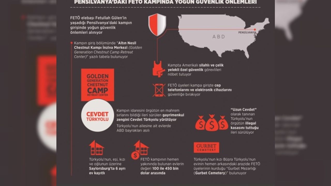 NEW YORK (AA) - ERTUĞRUL CİNGİL/İSLAM DOĞRU- Fetullahçı Terör Örgütü (FETÖ) elebaşı Fetullah Gülen'in yaşadığı, ABD'nin Pensilvanya eyaletine bağlı Saylorsburg beldesinde, etrafı tamamıyla ağaçlarla çevrili kampta, yoğun güvenlik önlemleri dikkati çekiyor.