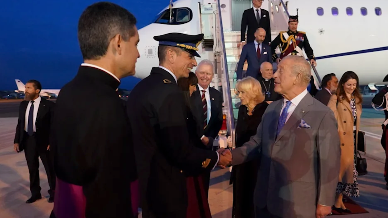 İngiltere Kralı 3. Charles ve eşi Kraliçe Camilla, Vatikan'a yapacakları resmi ziyaret için İtalya'nın başkenti Roma'daki Ciampino Havalimanı'na geldi. İngiltere Kralı 3. Charles, kanser teşhisinin ardından hastaneye kaldırıldıktan sonraki ilk yurt dışı gezisini İtalya'ya düzenledi. Bu gezi sırasında İtalya tarafından Quirinal Sarayı'nda ağırlandı.