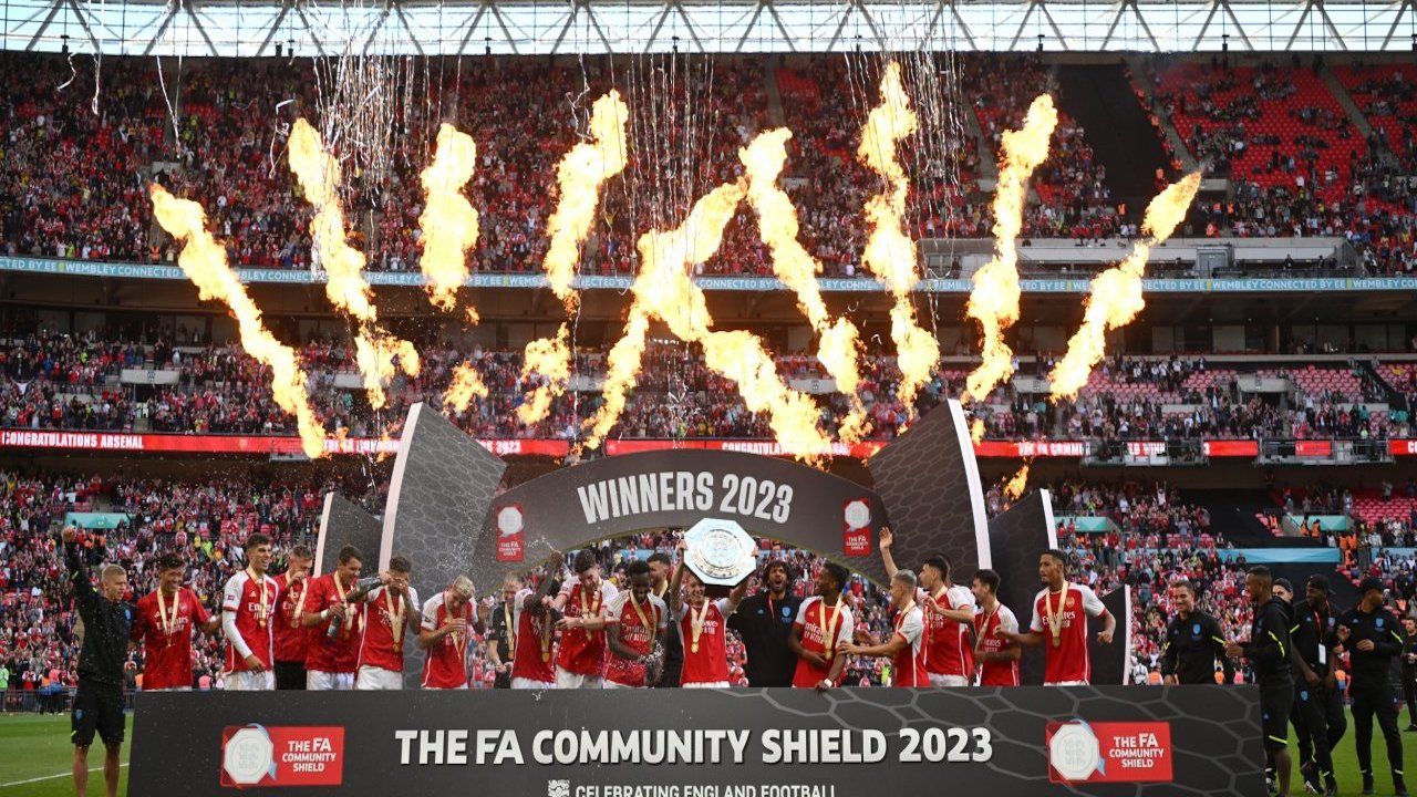 İngiltere Süper Kupa'da (FA Community Shield) Arsenal, normal süresi 1-1 sona eren mücadelenin ardından Manchester City'yi penaltılar sonunda 4-1 yenerek kupanın sahibi oldu.Başkent Londra'daki tarihi Wembley Stadı'nda oynanan yeni sezonun ilk kupa mücadelesinde, Manchester City ile Arsenal karşılaştı.İlk yarısı golsüz geçen karşılaşmanın ikinci devresinde City, 77. dakikada Cole Palmer'in ağları sarmasıyla 1-0 öne geçti. Mücadelenin son bölümünde ataklarını sıklaştıran Arsenal, 90+11. dakikada Leandro Trossard'ın golüyle skoru 1-1'e getirdi ve karşılaşmanın normal süresinin bu skorla tamamlanmasının ardından penaltılara geçildi.Arsenal, penaltılarda rakibine 4-1 üstünlük sağlayarak tarihinde 17. kez bu kupanın sahibi oldu.Geçen sezon UEFA Şampiyonlar Ligi, lig ve İngiltere Kupası'nda zirveye ulaşarak "üçleme" (treble) yapan City ise sezona kupayla başlama fırsatını değerlendiremedi.