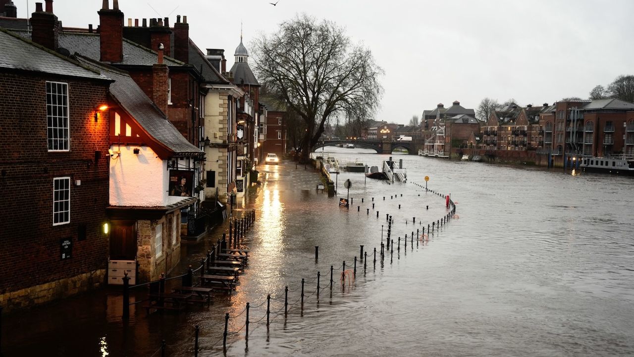 Bram fırtınasının etkili olduğu York kentinde evler ve sokaklar sular altında kaldı