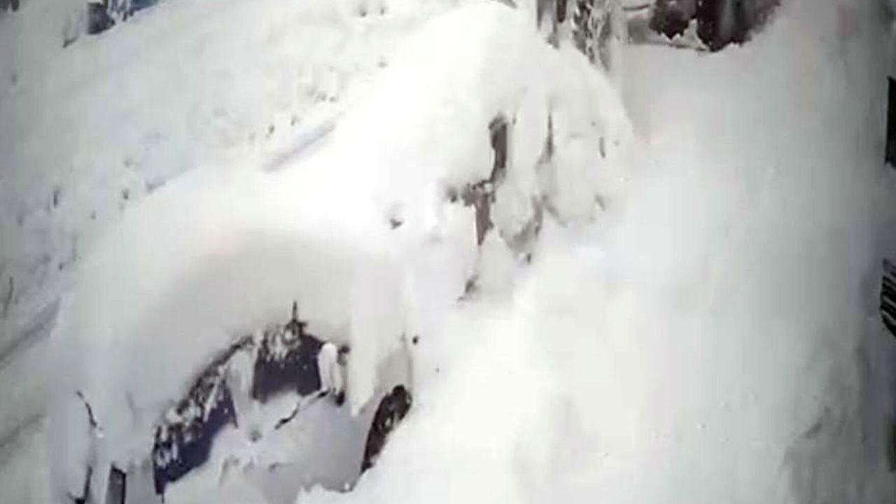 Üzümlü ilçe merkezinde yol açma çalışması yapan iş makinesi, yol kenarında park halinde bulunan ve üzerleri tamamen karla kaplanan 2 otomobilden birine çarptı. İş makinesinin çarptığı otomobil de önündekine çarptı. Kaza, güvenlik kamerasına yansıdı. (DHA)