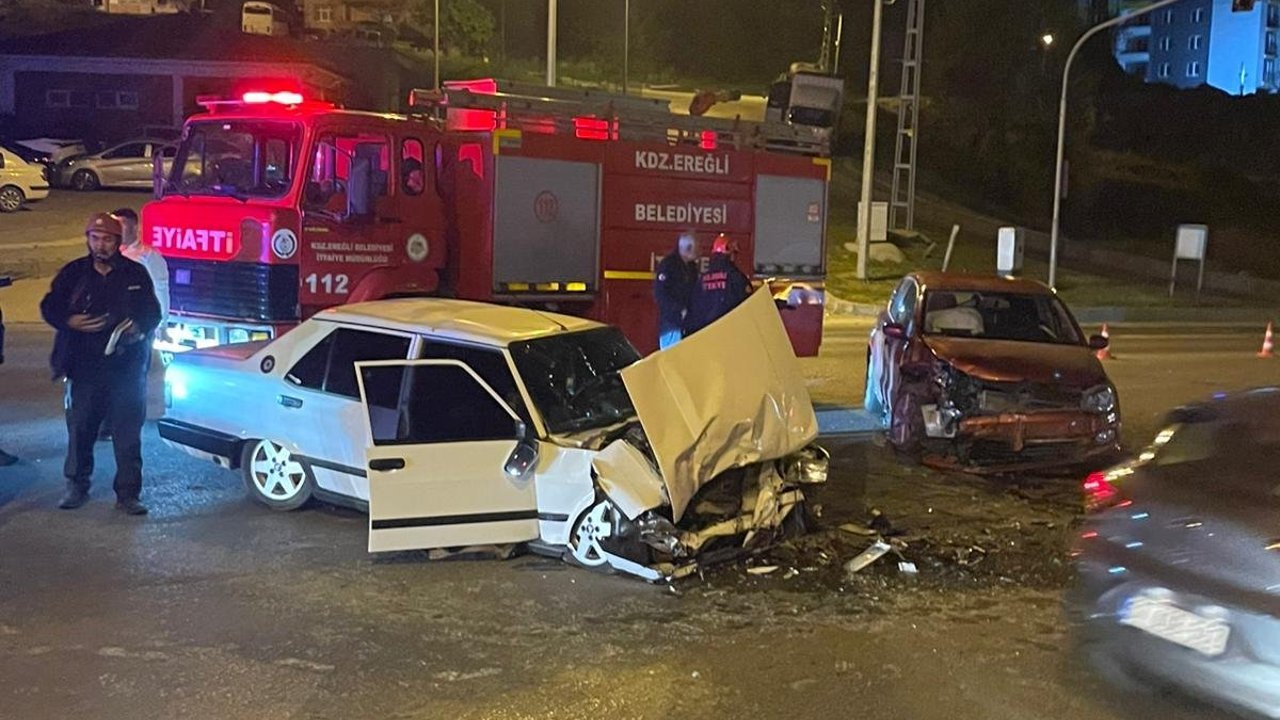 Kaza, gece saatlerinde Kepez Mahallesi dört yol ağzında meydana geldi. Ereğli yönünden gelen ve kırmızı ışıkta geçen Emirhan B. idaresindeki 67 LD 129 plakalı otomobil ile diğer yönden gelerek dönüş yapmak isteyen Hakkı B.'nin kullandığı 67 UC 319 plakalı otomobil kafa kafaya çarpıştı. Çevredekilerin ihbarı üzerine kaza yerine polis, sağlık ve itfaiye ekipleri sevk edildi. Kazada yaralanan 2 sürücü ambulanslarla Ereğli Devlet Hastanesi'ne kaldırıldı. Tedaviye alınan yaralıların durumunun iyi olduğu belirtildi.