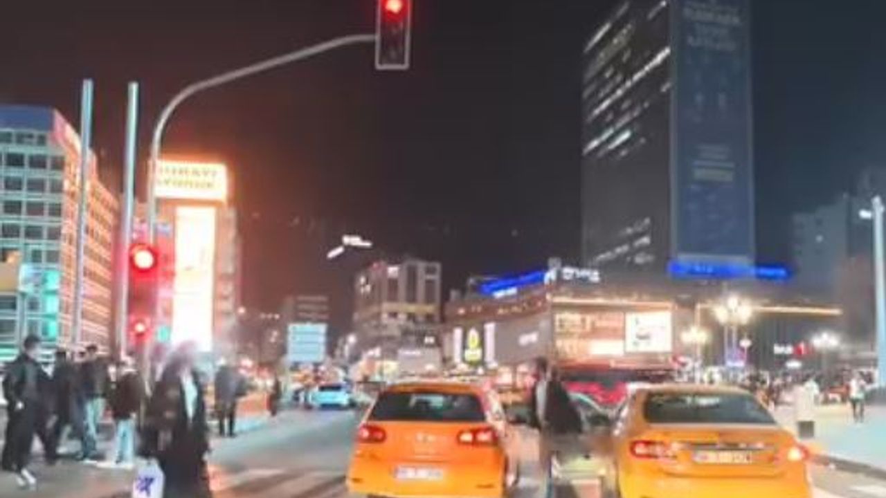 Ankara Emniyet Müdürlüğü Trafik Denetleme Şubesi ekipleri, saat 01.00 sıralarında sosyal medyada paylaşılan 'Kızılay göbekte kırmızı ışıkta geçen taksiciyi uyaran yaya hem küfür yedi hem de taksici araçtan indi yayaya saldırmaya yeltendi' paylaşımını ihbar kabul ederek harekete geçti. Görüntülerden taksinin plakasını tespit eden ekipler, söz konusu aracı durdurdu. Sürücü S.A.'ya 'Kırmızı ışık kurallarına uymamak' ve 'Araçları, kamunun rahat ve huzurunu bozacak veya kişilere zarar verecek şekilde saygısızca sürmek' maddelerinden idari para cezası uygulandı. (DHA)