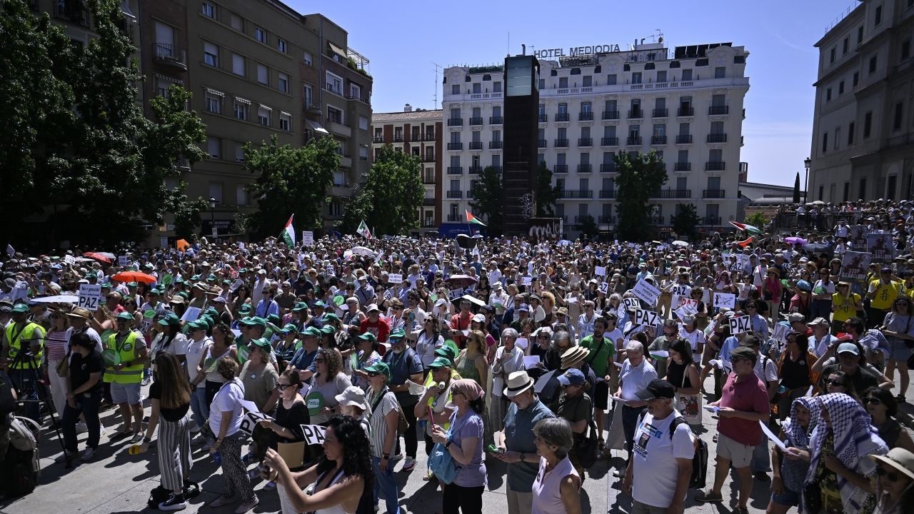 İspanya genelindeki gösterilerde "Özgür Filistin", "Katil İsrail", "Savaşa hayır", "Nehirden denize özgür Filistin", "Adalet" pankartları taşıyan İspanyollar, İsrail ve ABD karşıtı sloganlar attı.