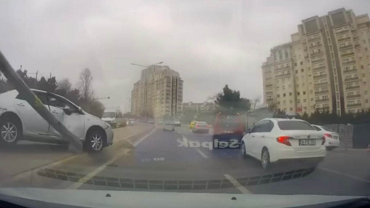 Kaza, dün saat 16.00 sıralarında Kayışdağı Caddesi'nde meydana geldi. İddiaya göre, sürücüsünün direksiyon hakimiyetini kaybettiği seyir halindeki otomobil yoldaki aydınlatma direğine çarptı. Bunun üzerine direk, yola devrildi. Bu sırada karşı yönden gelirken direğin devrildiğini gören hafif ticari aracın sürücüsü manevra yaparak kazadan kurtuldu. Kaza anı araç kamerasıyla kaydedildi. (DHA)