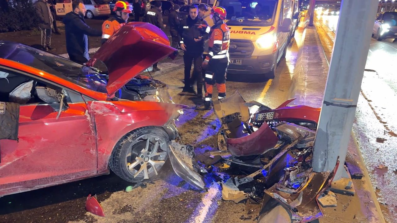 İhsan DÖRTKARDEŞ / İSTANBUL, (DHA)- AVCILAR'da D-100 Karayolu'nda sürücüsünün kontrolünü kaybettiği otomobil, önce refüjdeki aydınlatma direğine ardından yolda ilerleyen kapalı kasa minibüse çarptı. Kazada 2 kişi yaralandı. Olay yerine gelen iki kişi ise ambulansa binmek için görevlilerle tartıştı.