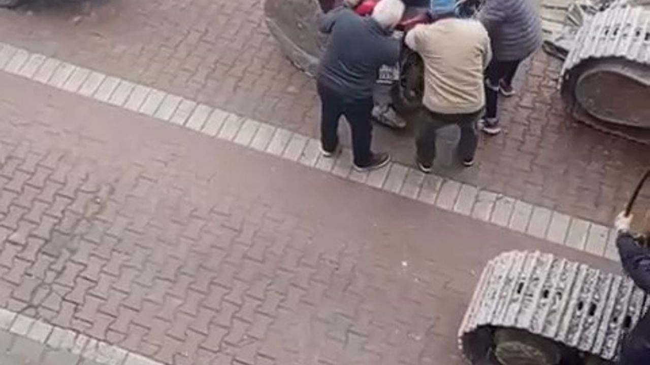Olay, dün Cihangir Mahallesi'nde meydana geldi. Yol kenarına park edilen motosiklet, rüzgarın etkisiyle dengesini kaybederek bitişikteki inşaat alanına düştü. Motosikletinin düştüğünü fark eden sürücü, inşaatta çalışan işçilerden yardım istedi. Kendi imkanlarıyla motosikleti çıkaramayan işçiler, inşaatta kullanılan iş makinesini alana getirdi. Kepçeye binerek motosikletinin bulunduğu alana inen sürücüye işçiler de yardım etti. Motosikletin yeniden düşmemesi için sürücü gidon ve gövdesini tutarken, kepçe operatörü motosikleti bulunduğu yerden çıkararak yol kenarına indirdi. (DHA)