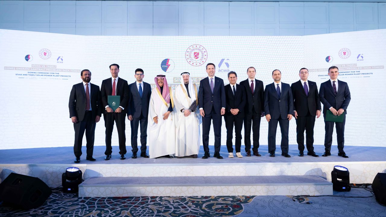 Enerji ve Tabii Kaynaklar Bakanı Alparslan Bayraktar, Suudi Arabistan ile yapılan anlaşma kapsamında Sivas ve Taşeli'nde kurulacak Güneş Enerjisi Santrali (GES) projelerine ilişkin imza törenine katıldı. Törene ACWA Yönetim Kurulu Başkanı Muhammed Abunayyan, Uluslararası Yenilenebilir Enerji Ajansı Genel Direktörü La Camera, kamu ve özel sektör temsilcileri katıldı. Törende 'Enerji ve Tabii Kaynaklar Bakanlığı ile ACWA arasında yatırım anlaşması' ve 'Elektrik Üretim A.Ş Genel Müdürlüğü ile ACWA Arasında 'Elektrik Satın Alım Anlaşması' imzalandı. İlk anlaşmaya Bakan Yardımcısı Zafer Demircan ile ACWA Yönetim Kurulu Başkan Yardımcısı ve İdari Direktörü Raad Al Saady, ikinci anlaşmaya ise EÜAŞ Genel Müdürü Zafer Benli ile ACWA Türkiye-Azerbaycan Ülke Genel Müdürü Mehmet Selim Güven imza attı.