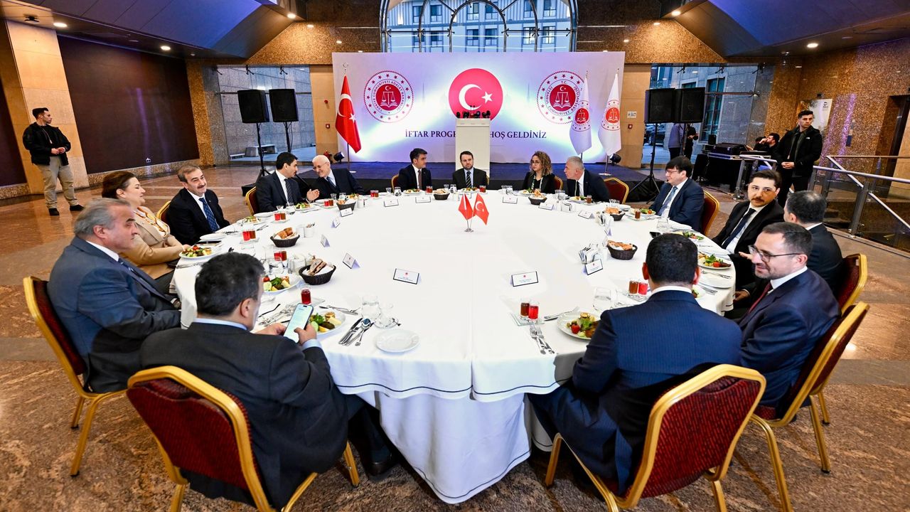 Ramazan ayının rahmetini, bereketini ve kardeşlik iklimini paylaştığı iftar sofrasında bulunmaktan memnuniyet duyduğunu dile getiren Adalet Bakanı Akın Gürlek, 'Bu koridorların sabahın erken saatlerinden gece yarılarına kadar süren emeğe, dosyaların arkasındaki insan hikayelerine yakından şahit oldum. İstanbul Avrupa'nın ve Türkiye'nin en büyük adliyelerinden bünyesinde bulundurması yanında aynı zamanda ülkemizin hukuk hafızasının en güçlü merkezlerinden biridir. Bu çatı altında verilen her karar, milletimizin adalete olan güveninin teminatıdır' dedi.