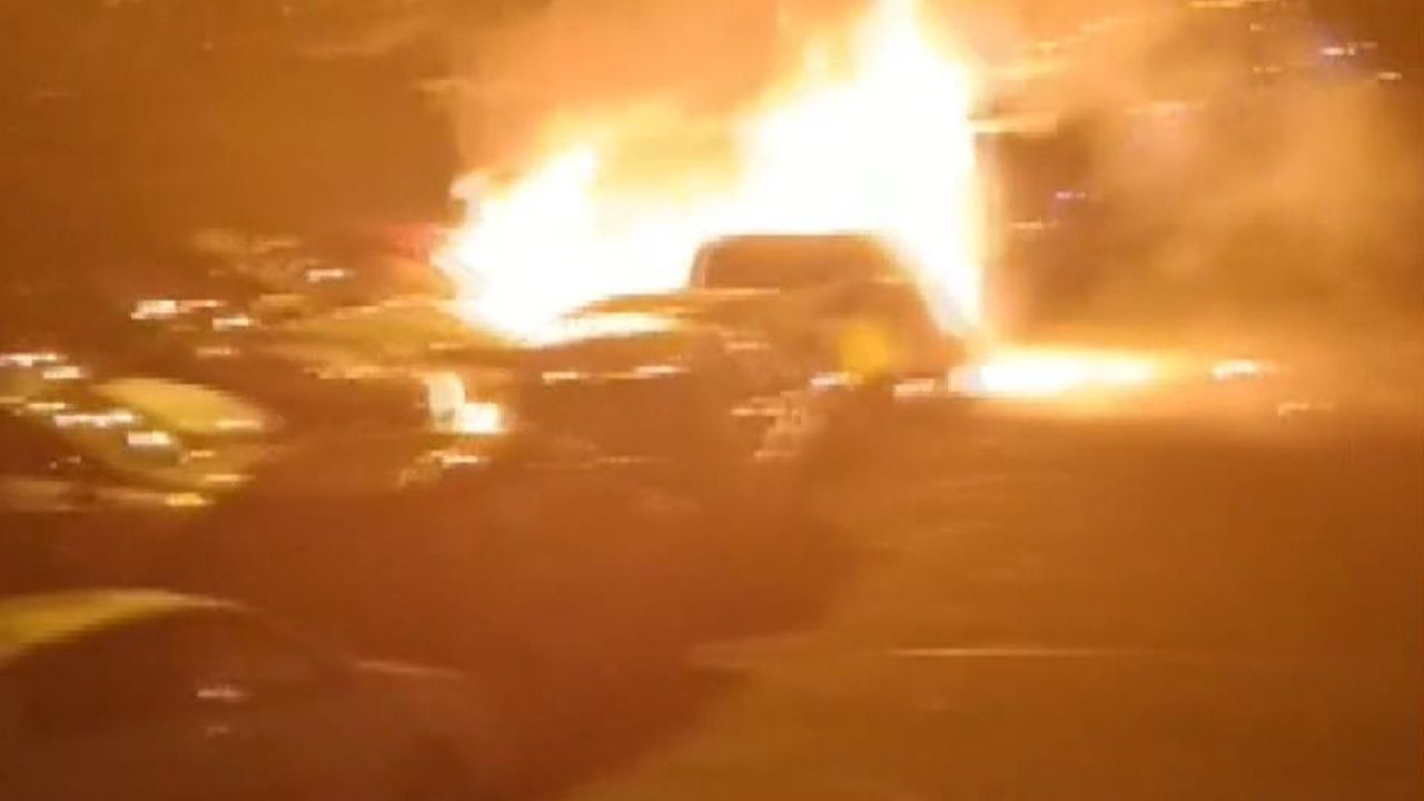 Öte yandan araçlardan yükselen alevler, cep telefonu görüntülerine yansıdı. Görüntülerde, alevlerin yükseldiği anlarda bir otomobilde patlama olduğu görülüyor.